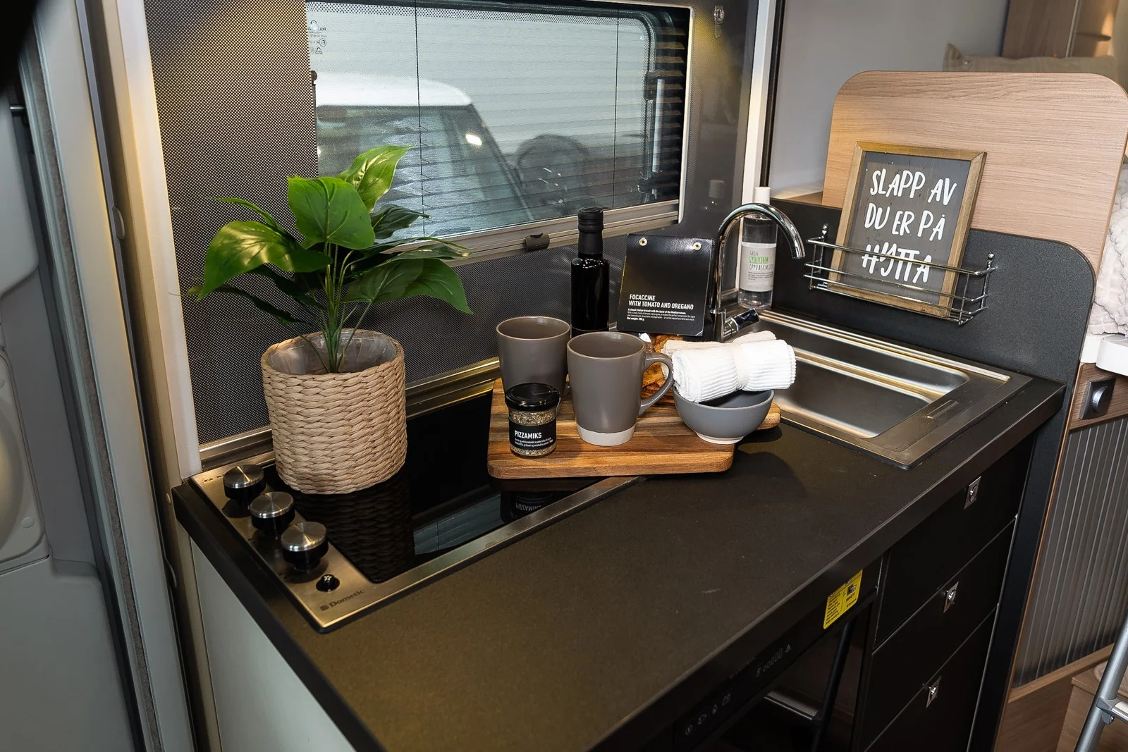Le camping-car est prêt pour les vacances, vous avez donc ici tout ce dont vous avez besoin et un peu plus :
