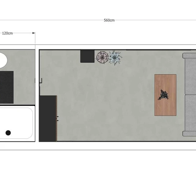 Dimensions intérieures : 2,00 x 5,60 x H 2,45 m, surface intérieure brute 11,2 m2.