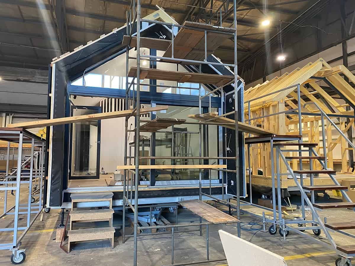 La maison modèle F3  est disponible en trois tailles : version de base 1 ( 13,10 m x 4,2 m ), version 2 ( 13,5 m x 4,2 m) et version étendue 3 ( 14,1 m x 4,2 m). Chaque version (1, 2 et 3) présente un agencement fonctionnel légèrement différent  voir ci-dessous pour la F3). La structure  de la maison se compose de deux modules, chacun doté de son propre plancher inférieur en acier, peint ou galvanisé selon la spécification choisie. Les autres éléments structurels (plancher, murs et toiture) sont réalisés avec une ossature en bois certifié C24. (…)